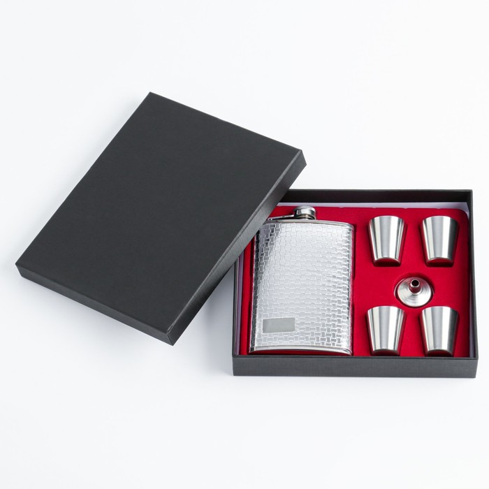 Подарочный набор 6 в 1 «Клетка»: фляжка 270 мл + 4 рюмки 30 мл, воронка, металл — Характеристики