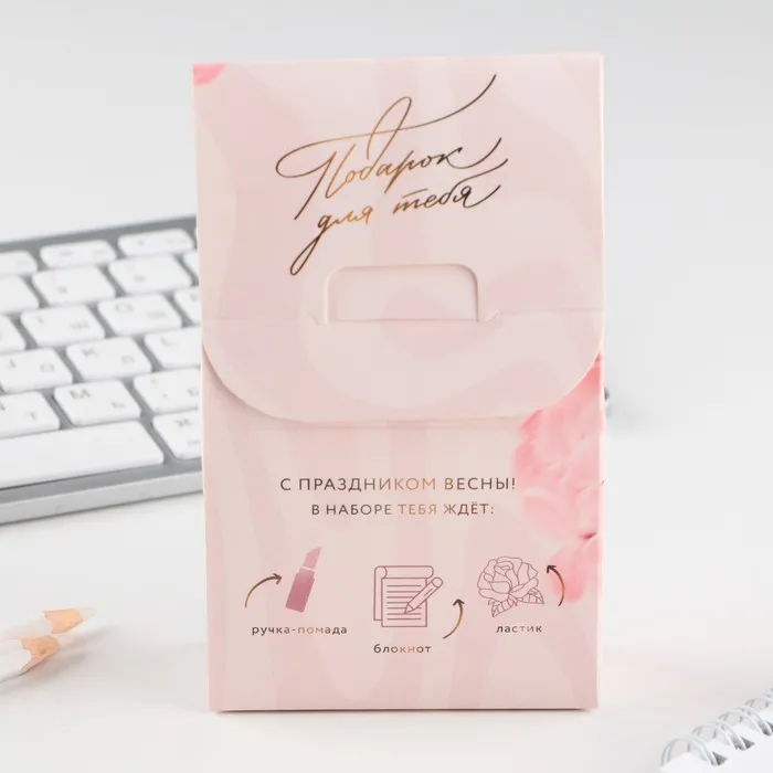 Подарочный набор «8 марта», блокнот, ручка-фигурная и ластик — Характеристики
