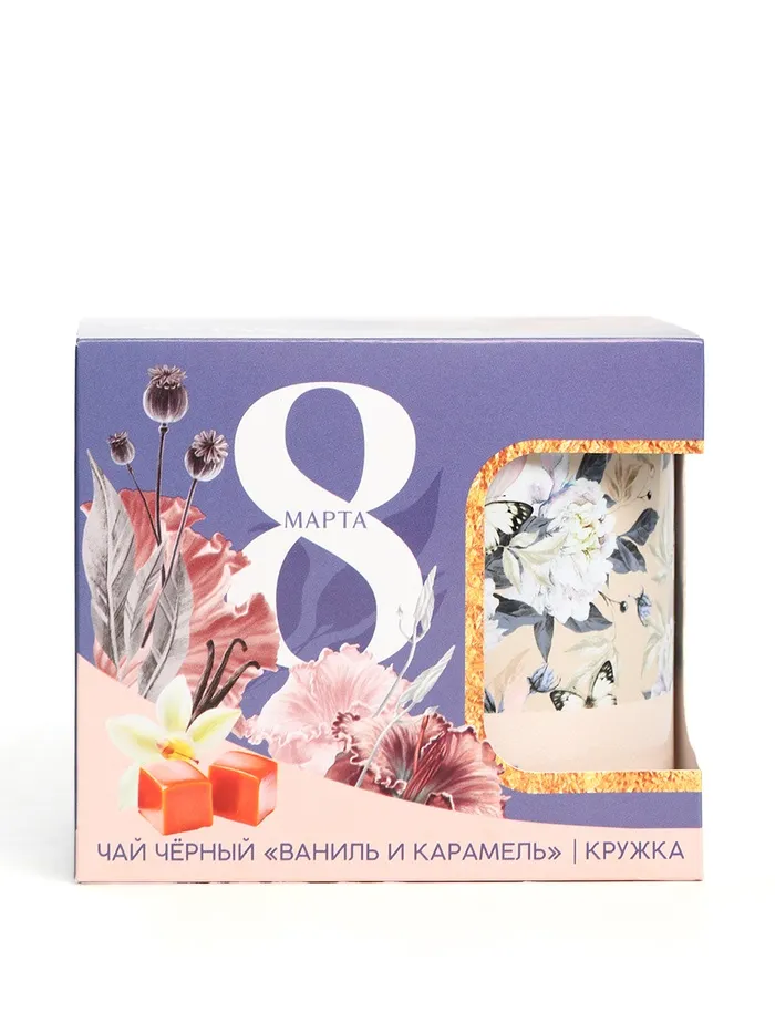 Подарочный набор «8 марта»: чай чёрный «ваниль и карамель» 50 г., кружка 300 мл. — Характеристики