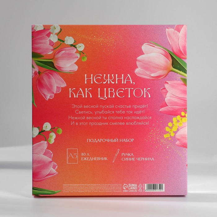 Подарочный набор «8 марта», ежедневник А5, 80 л. и ручка — Характеристики