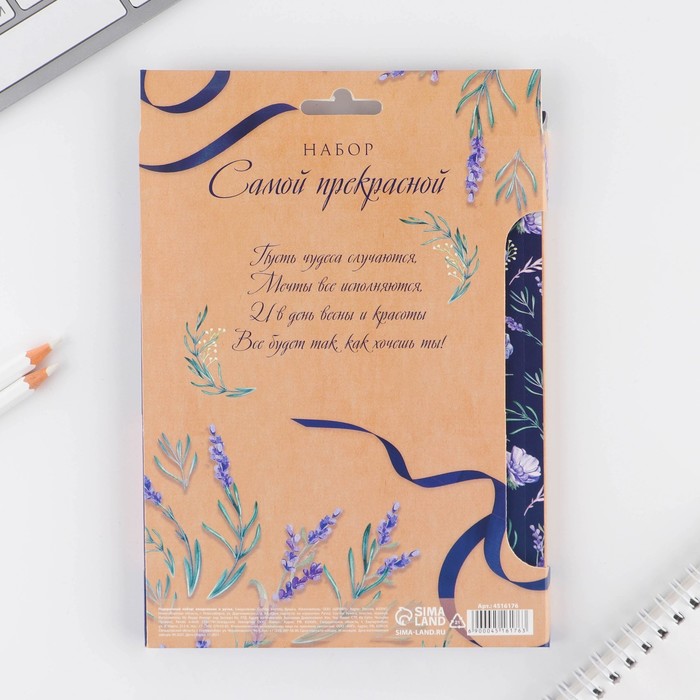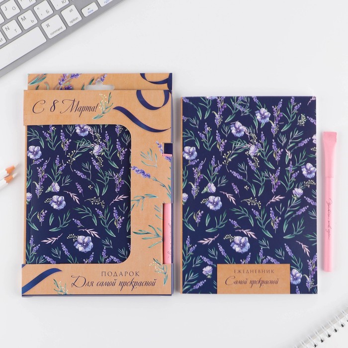 Подарочный набор «8 марта», ежедневник А5, 80 листов и экоручка — Характеристики