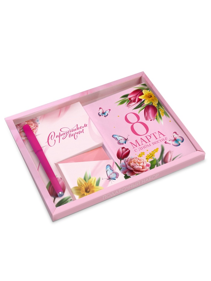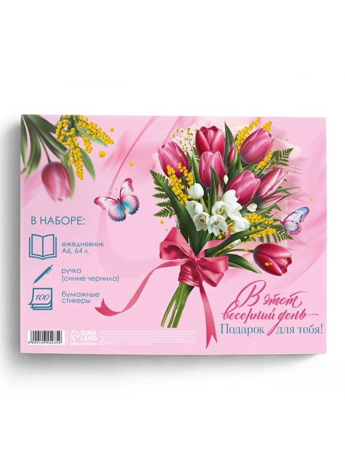 Подарочный набор «8 марта!», ежедневник А6, блок с липким слоем, ручка — Характеристики