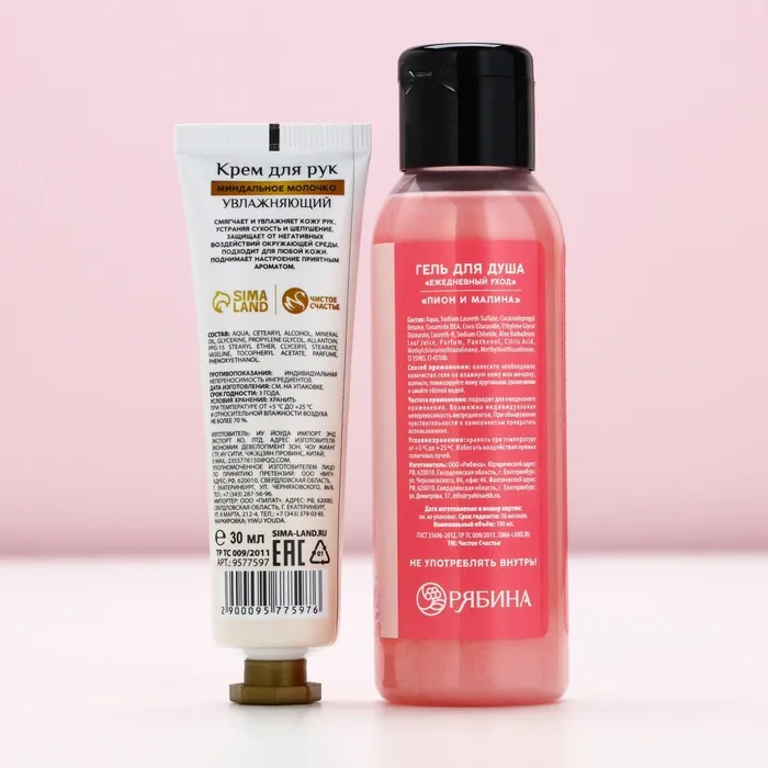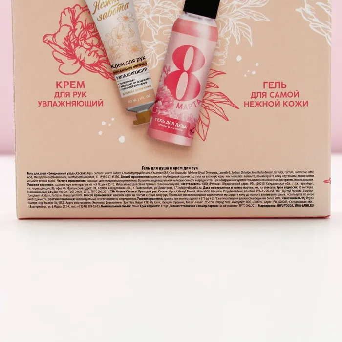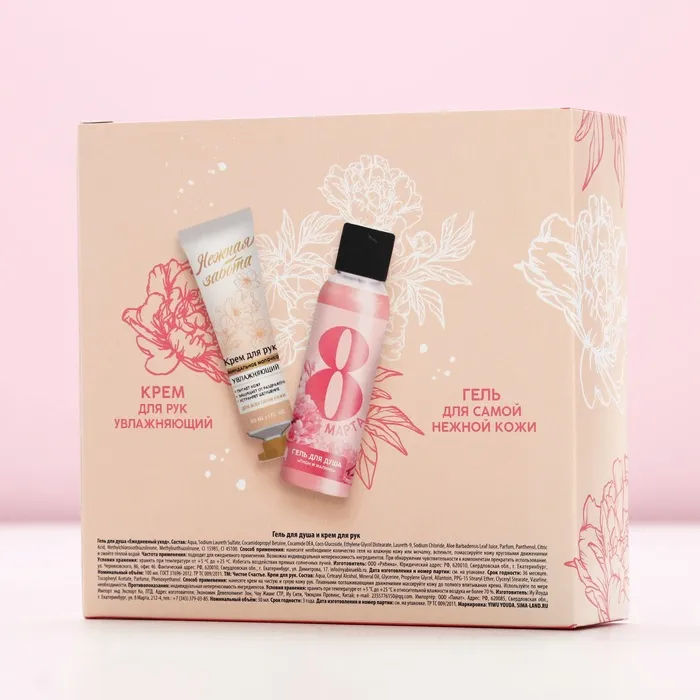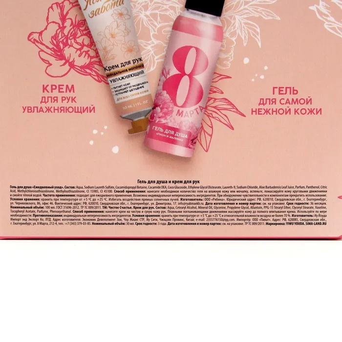 Подарочный набор «8 Марта!»: гель для душа 100 мл и крем для рук 30 мл, Чистое счастье — Характеристики