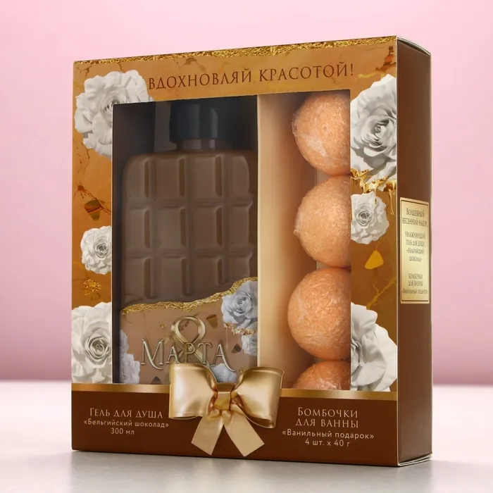 Подарочный набор «8 Марта!»: гель для душа 300 мл и бомбочки для ванны 4×40 г, Чистое счастье — Характеристики
