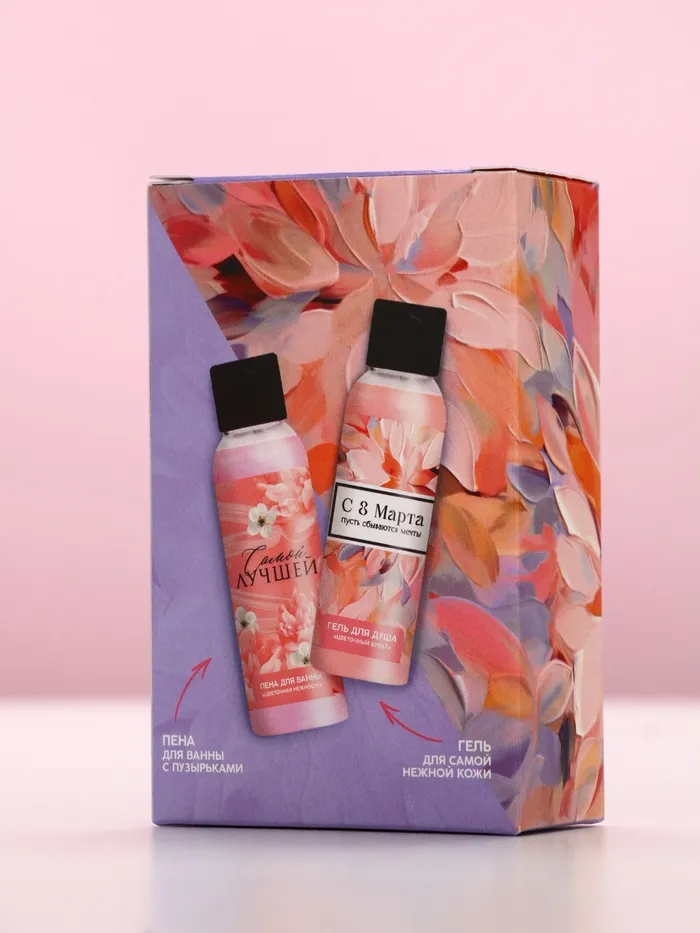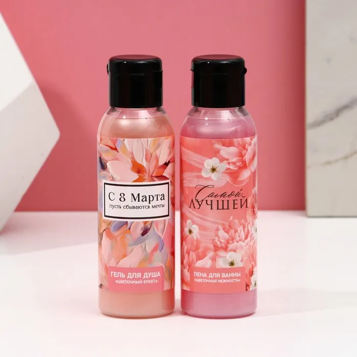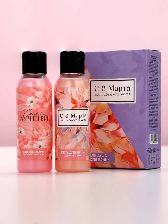 Подарочный набор «8 Марта!»: гель для душа и пена для ванны, 2×100 мл, Чистое счастье — Характеристики