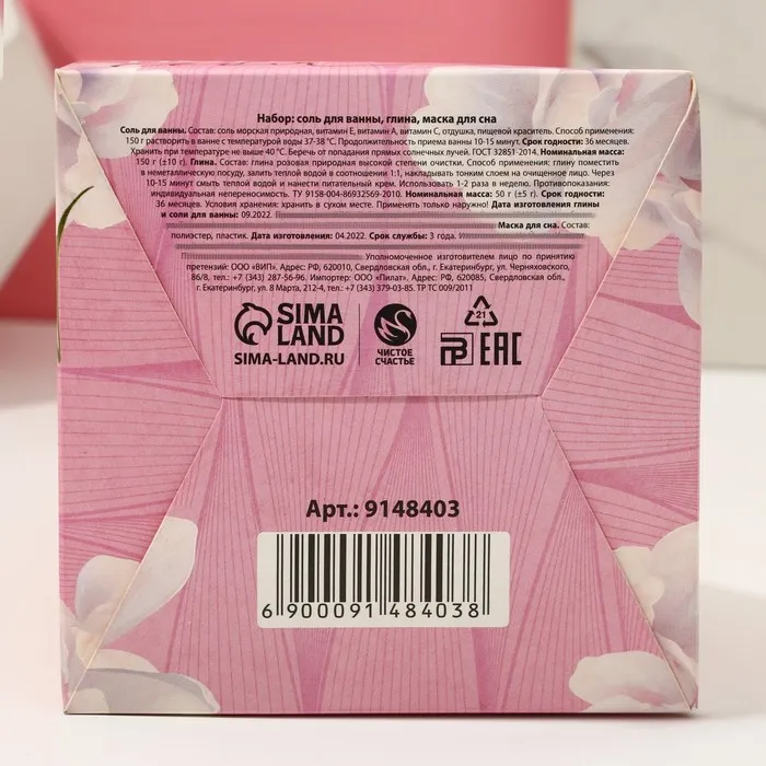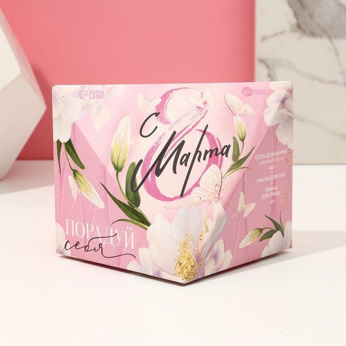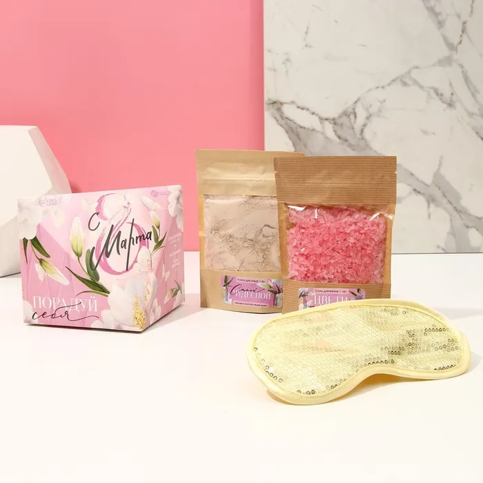 Подарочный набор «8 Марта»: соль для ванны 150 мл, глина для лица 50 мл, маска для сна, Чистое счастье — Характеристики