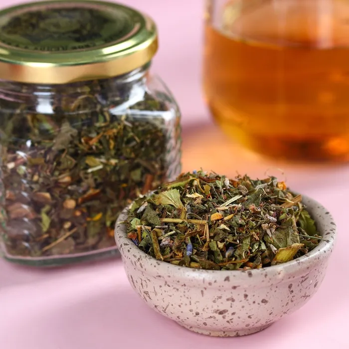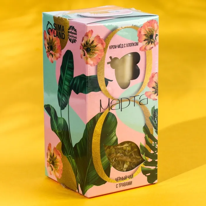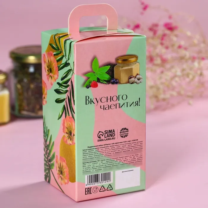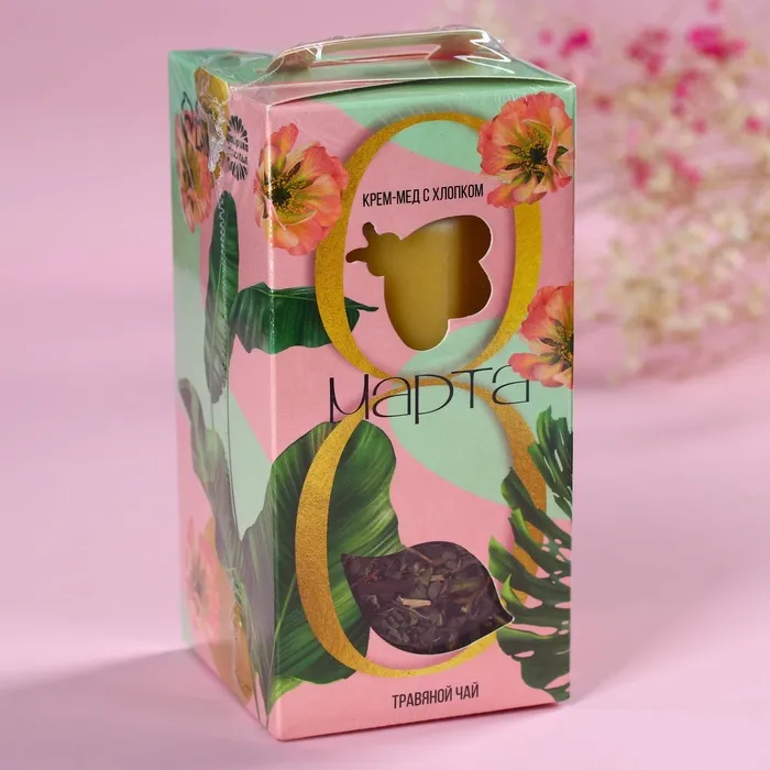 Подарочный набор «8 Марта»: травяной чай и смородиной 43 г., крем-мед хлопковый 120 г. — Характеристики