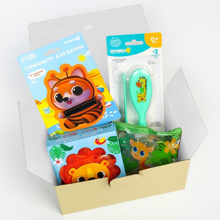 Подарочный набор «Африка» 7 в 1: набор расчесок, мочалка, термометр для ванны, маникюрный набор: ножнички, пилочка, кусачки, зубная щетка на палец в контейнере — Характеристики