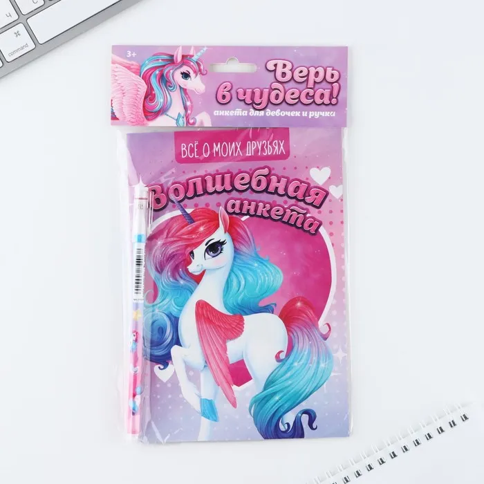 Подарочный набор, анкета для девочек и ручка «Единорог» — Характеристики