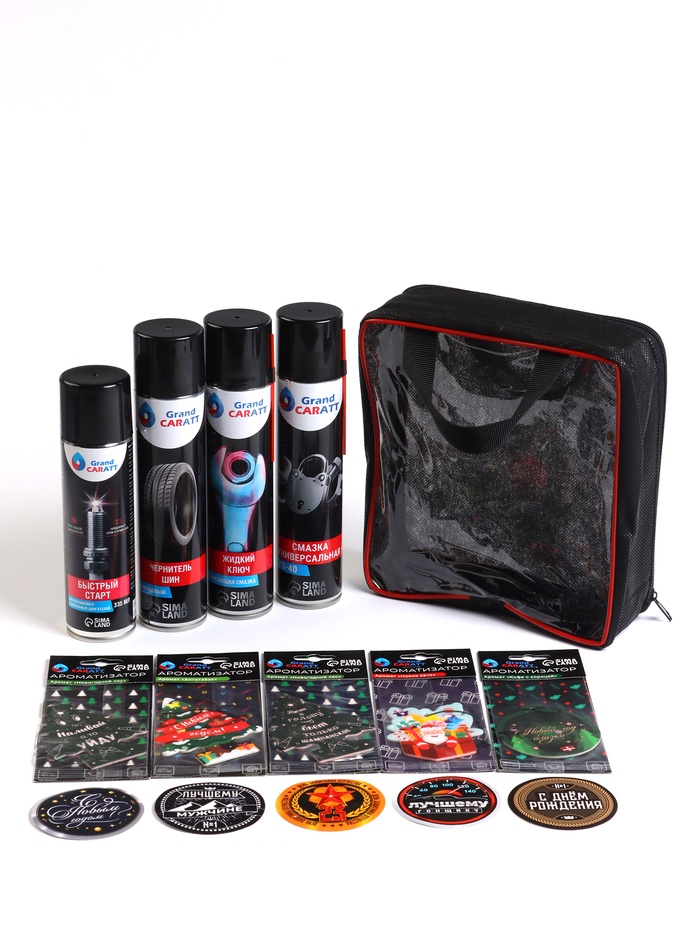Универсальный подарочный набор Grand Caratt станет отличным выбором для любого автолюбителя. В комплект входят качественная автохимия и ароматизаторы, которые помогут поддерживать автомобиль в чистоте и наполнить его приятным ароматом. Элегантная сумка для хранения делает набор практичным и удобным.