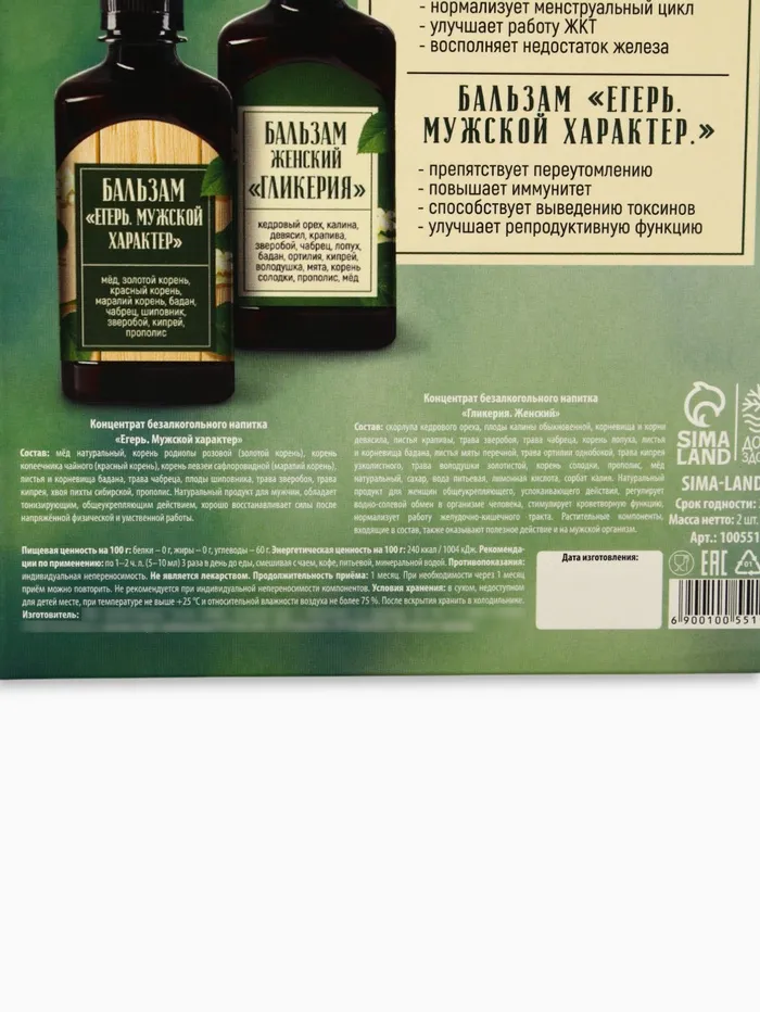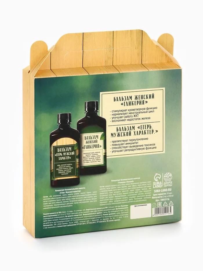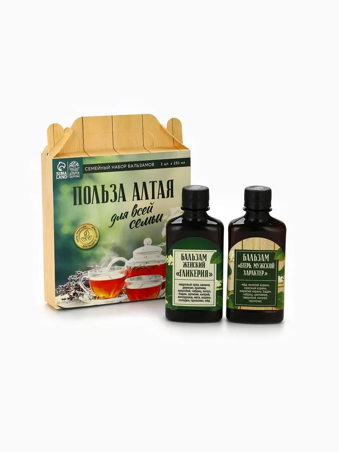 Состав: мёд натуральный, корень родиолы розовой (золотой корень), корень копеечника чайного (красный корень), корень левзеи сафлоровидной (маралий корень), листья и корневища бадана, трава чабреца, плоды шиповника, трава зверобоя, трава кипрея, хвоя пихты сибирской, прополис.