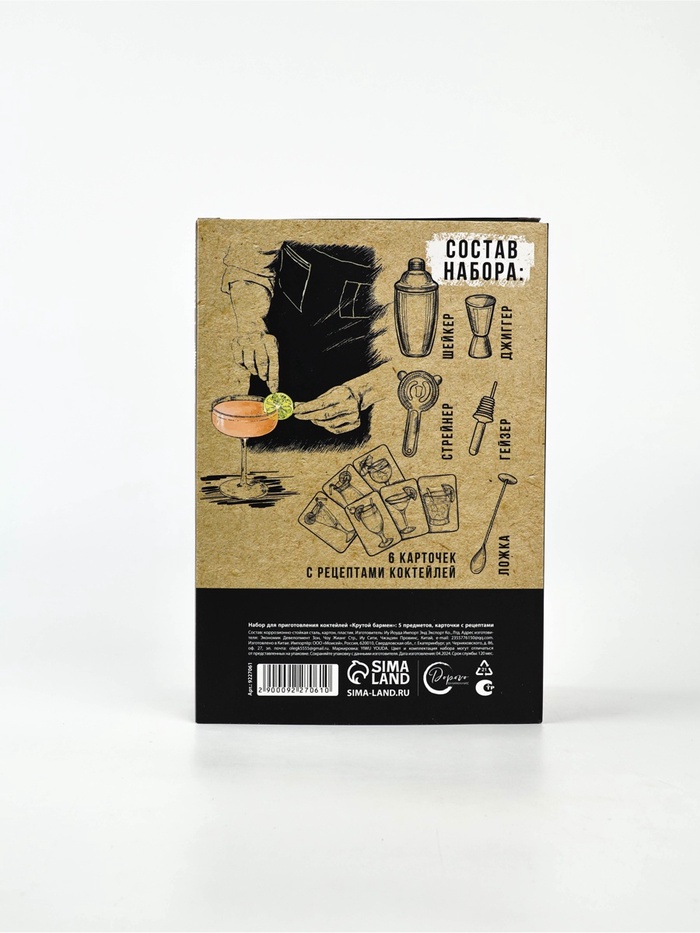 Подарочный набор барный «Крутой бармен», 5 предметов, карточки с рецептами — Характеристики