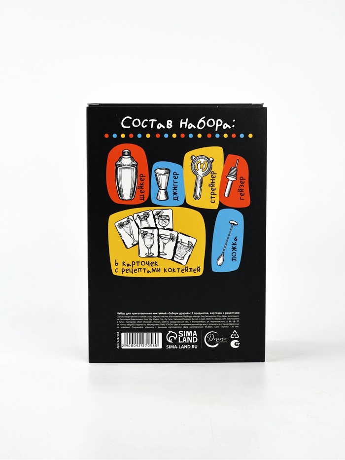 Подарочный набор барный «Собери друзей», 5 предметов, карточки с рецептами — Характеристики