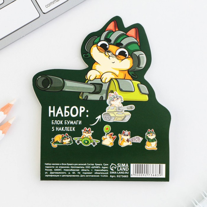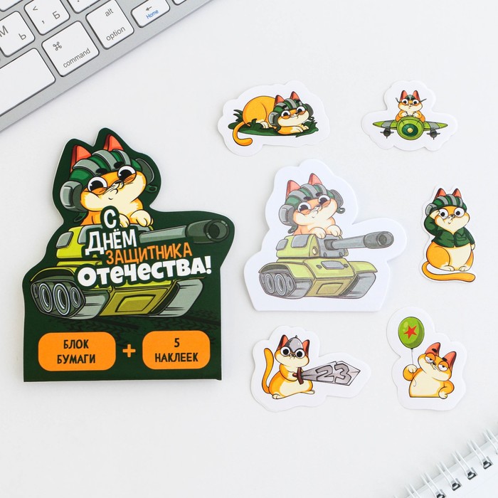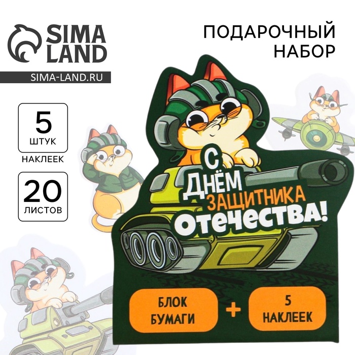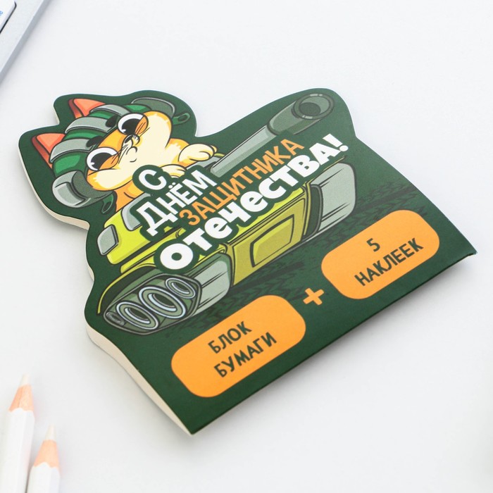 Подарочный набор, блок 20 листов + 5 наклеек «23 февраля: С днём защитника отечества!» — Характеристики