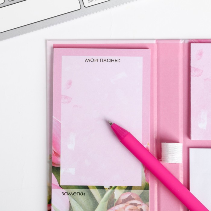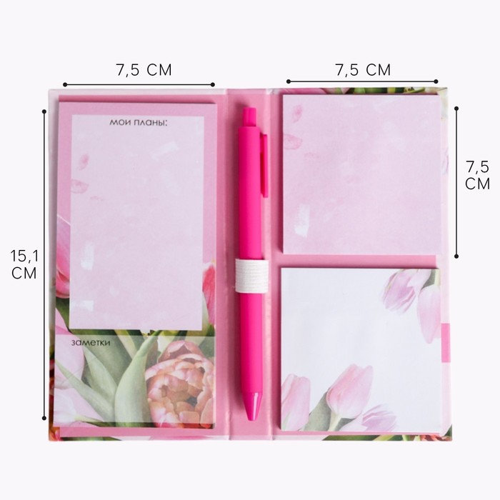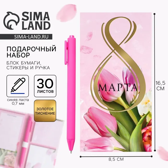 Подарочный набор, блок бумаг для записей, стикеры, ручка «8 Марта» — Характеристики