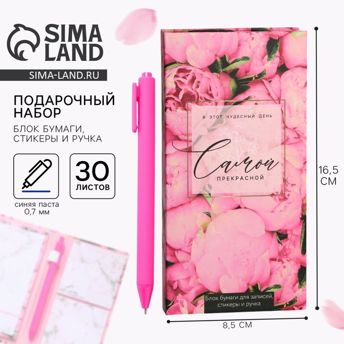 Подарочный набор, блок бумаг для записей, стикеры, ручка «Самой прекрасной» — Характеристики
