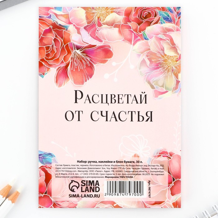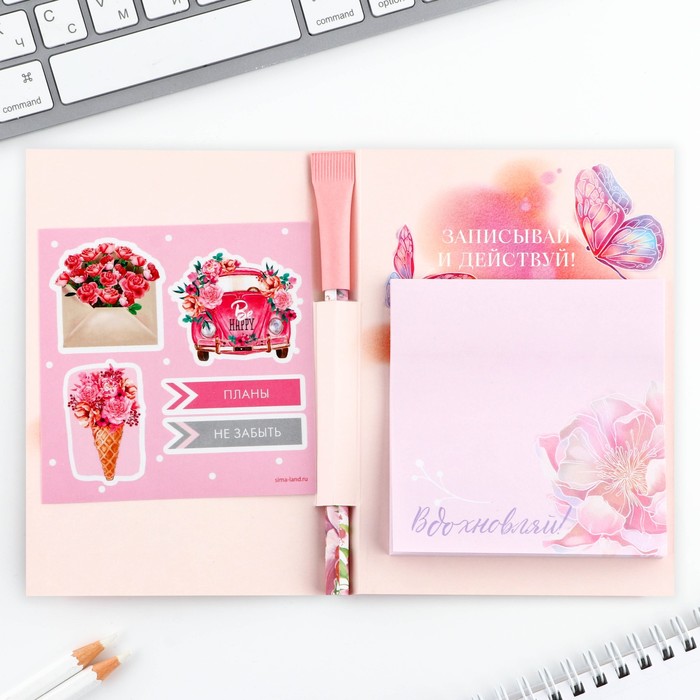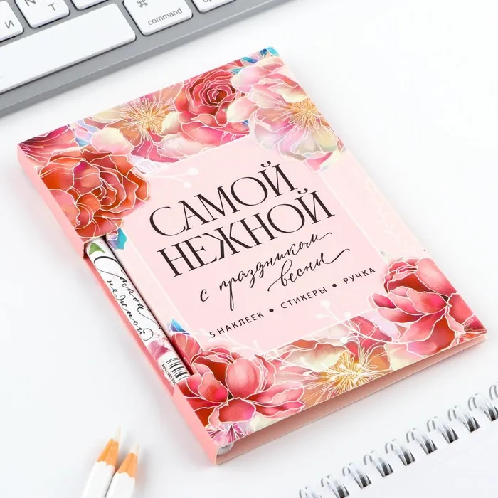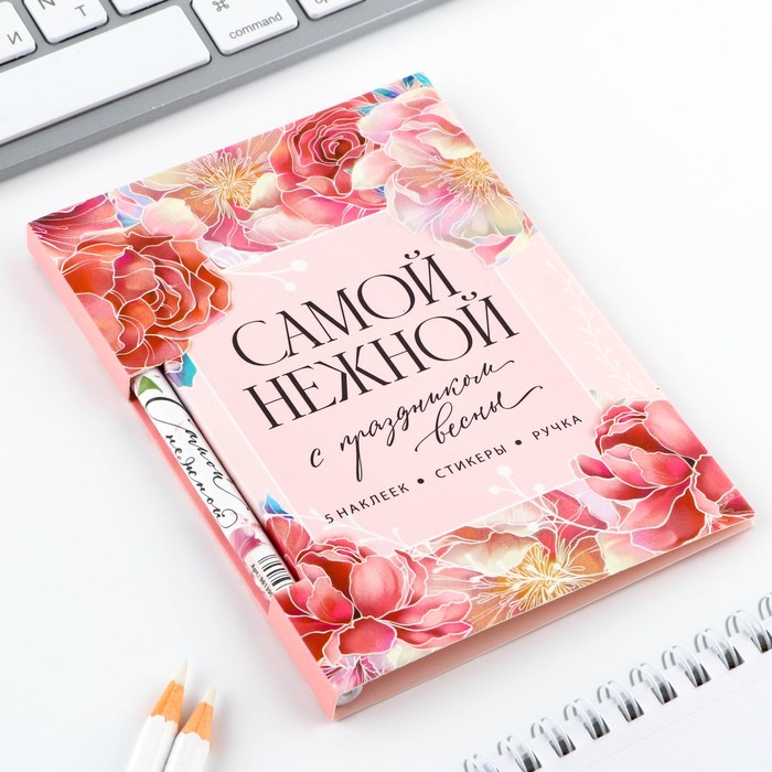 Подарочный набор, блок бумаги 30 л, ручка синяя паста 1.0 мм и 5 шт. наклеек «Самой нежной» — Характеристики