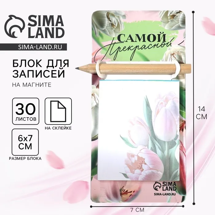 Подарочный набор, блок бумаги 30 л. с карандашом на магните «Самой прекрасной» — Характеристики