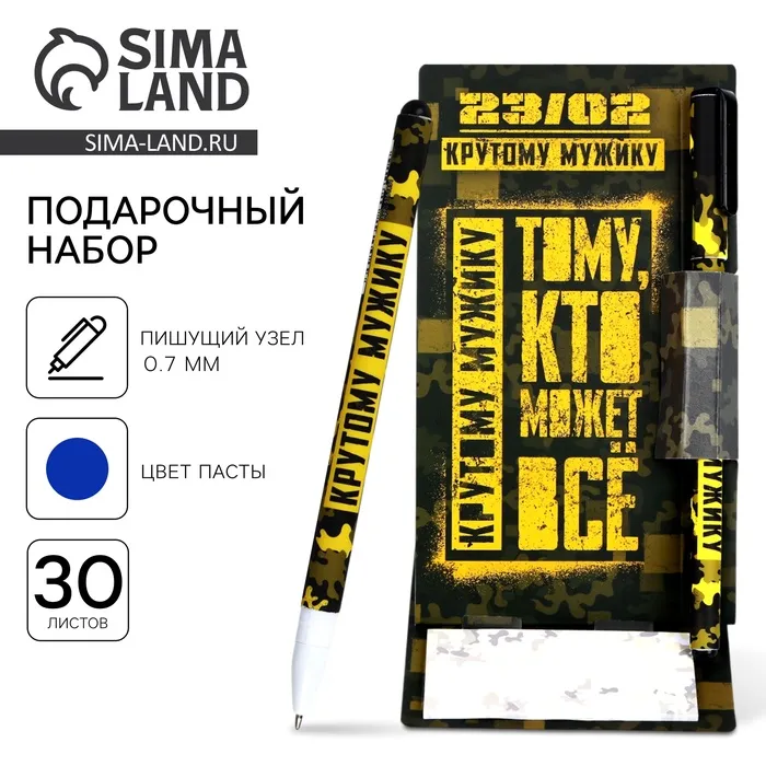 Подарочный набор, блок бумаги и шариковая ручка пластик «23 февраля» — Характеристики