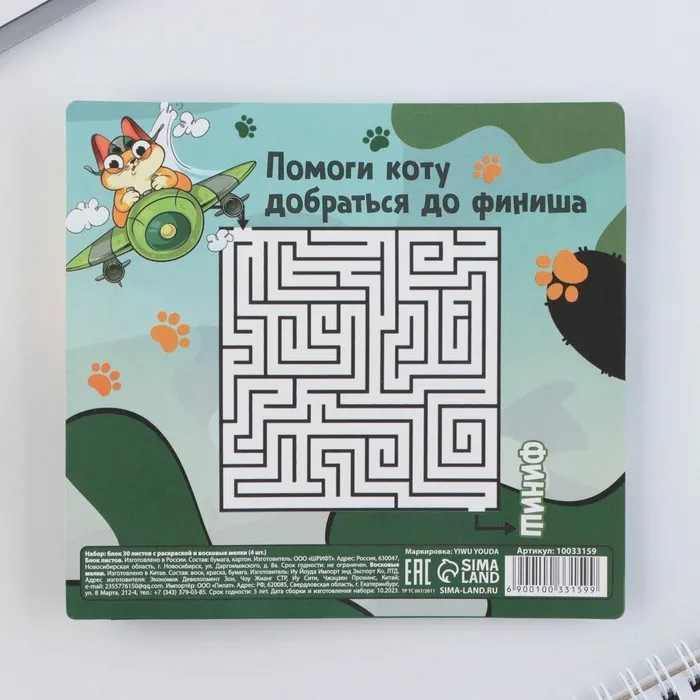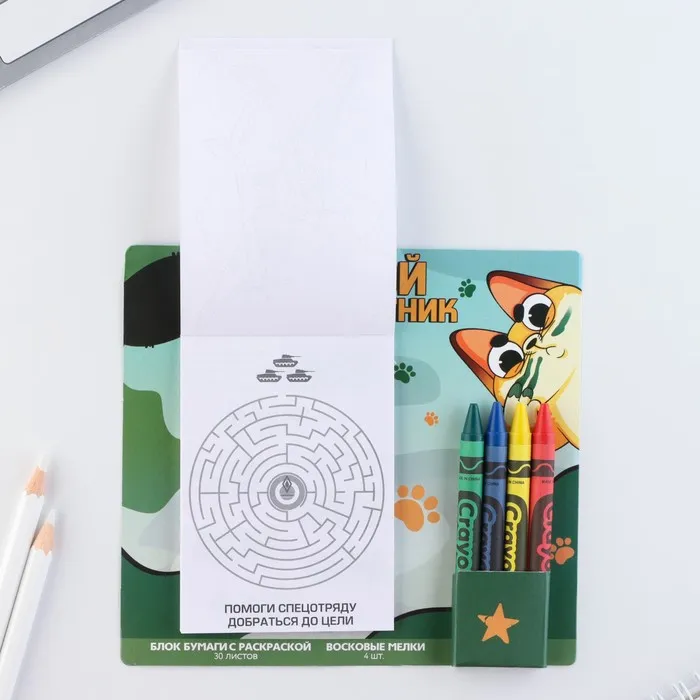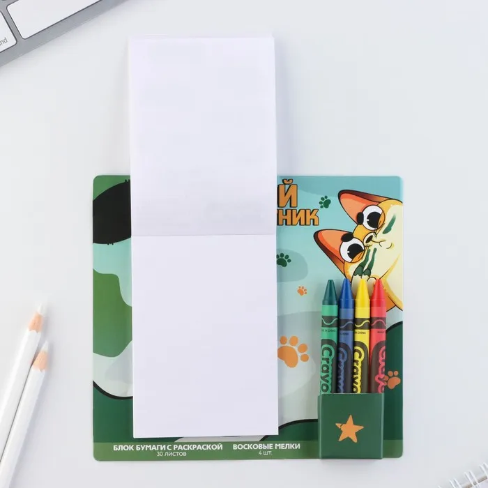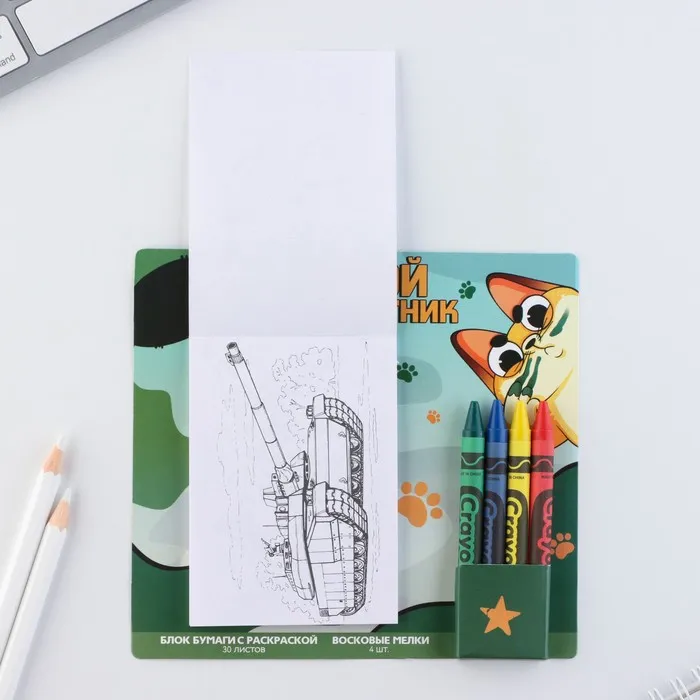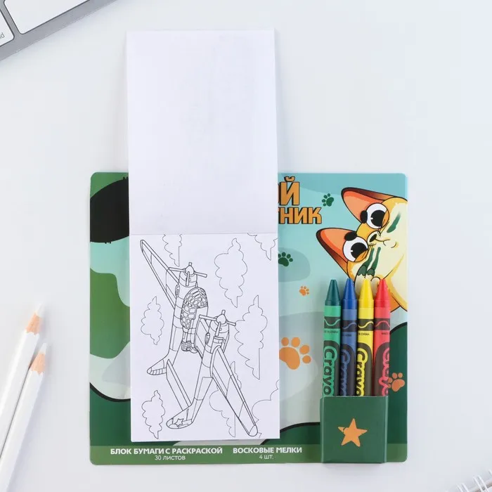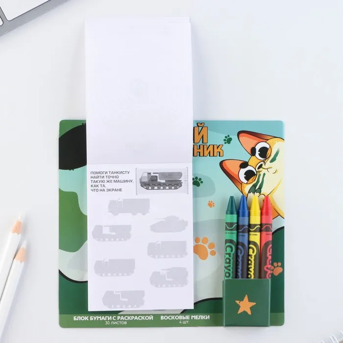 Подарочный набор блок листов с раскраской и восковые мелки «Герой и защитник» — Характеристики