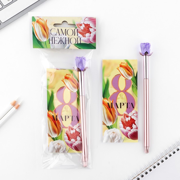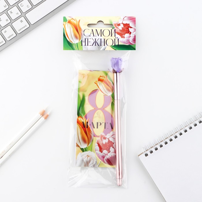 Подарочный набор, блокнот 16 листов A7 и ручка пластик «8 марта: Самой нежной» — Характеристики