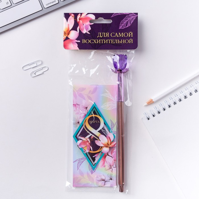 Подарочный набор, блокнот 32 листа A7 и ручка «8 марта: Для самой восхитительной» — Характеристики