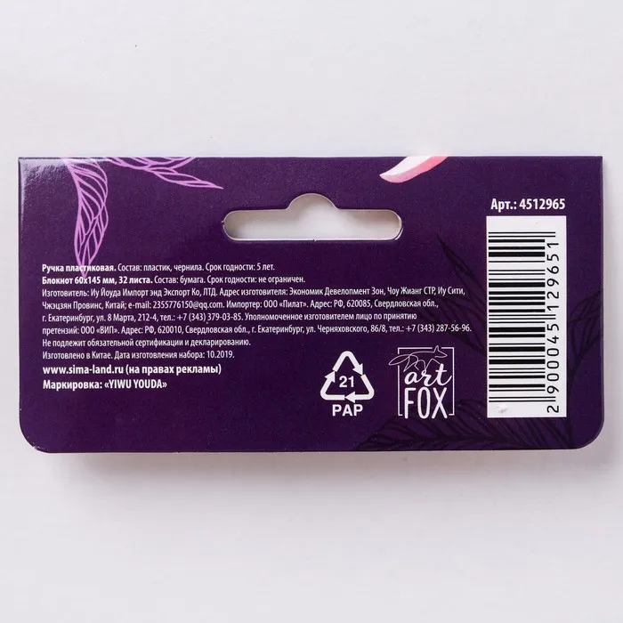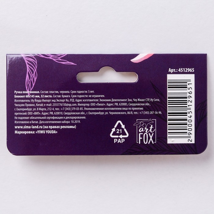 Составляющие набора: Ручка