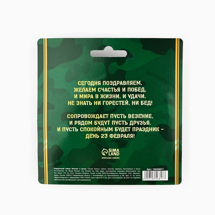 Подарочный набор, блокнот 32 листа и ручка-граната «23 февраля: Для настоящего героя» — Характеристики