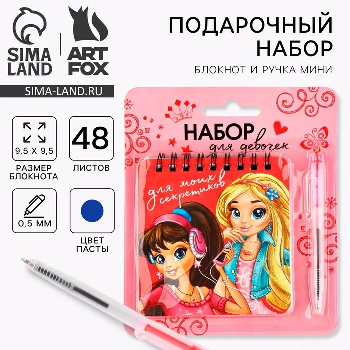 Подарочный набор блокнот 48 листов + ручка «Девочки» — Характеристики