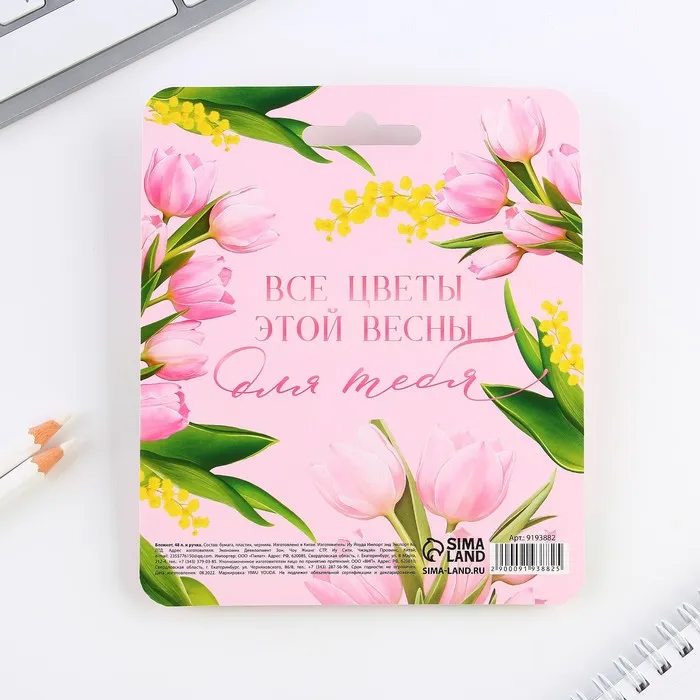 Подарочный набор, блокнот 48 листов + ручка «Самой нежной. 8 марта» — Характеристики