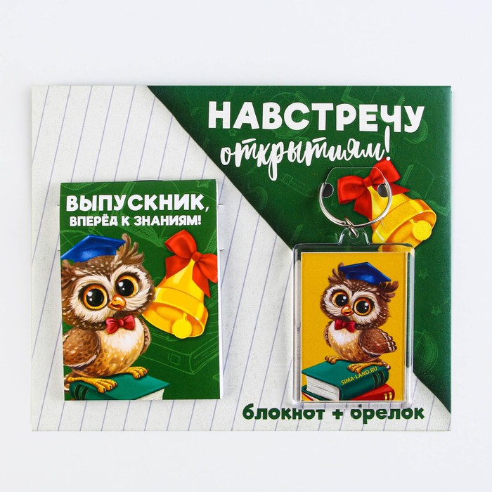 Подарочный набор, блокнот 5.5×7.5 см, 16 л., брелок 4×5.5 см «Выпускной:Навстречу открытиям» — Характеристики
