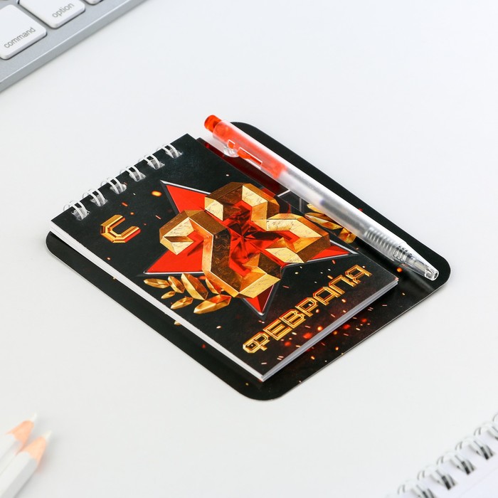 Подарочный набор, блокнот 9×10.4 см и мини-ручка «С 23 Февраля. Классика» — Характеристики