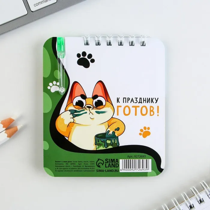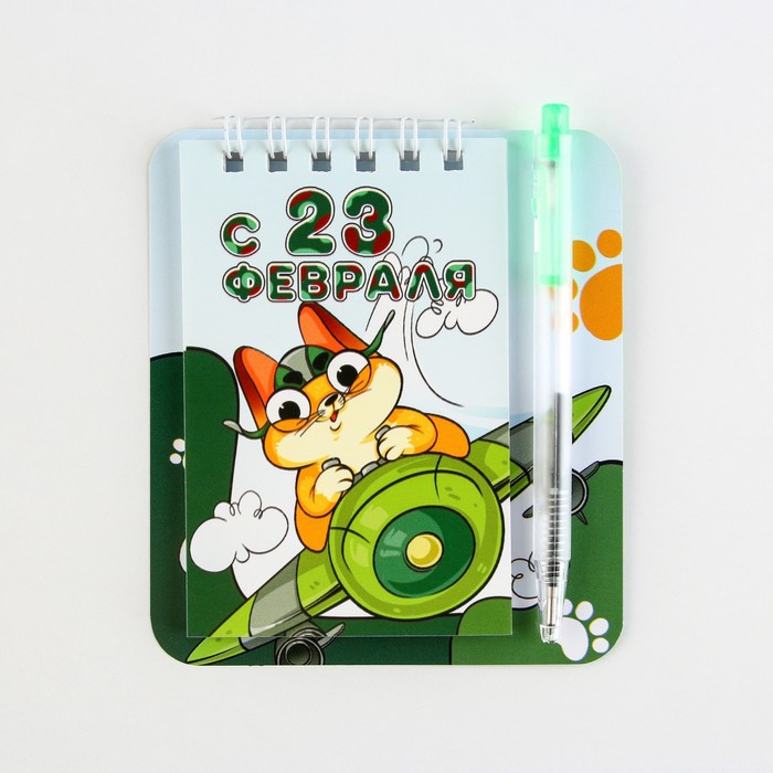 Подарочный набор, блокнот 9×10.4 см и мини ручка «С 23 февраля. Кот» — Характеристики