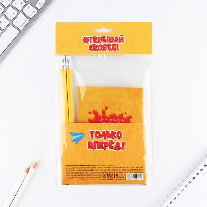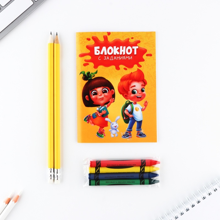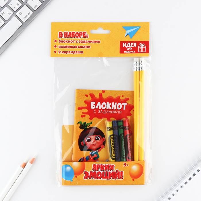 Подарочный набор, блокнот А6, карандаши 2 шт. и восковые мелки 4 шт. «Ярких эмоций» — Характеристики