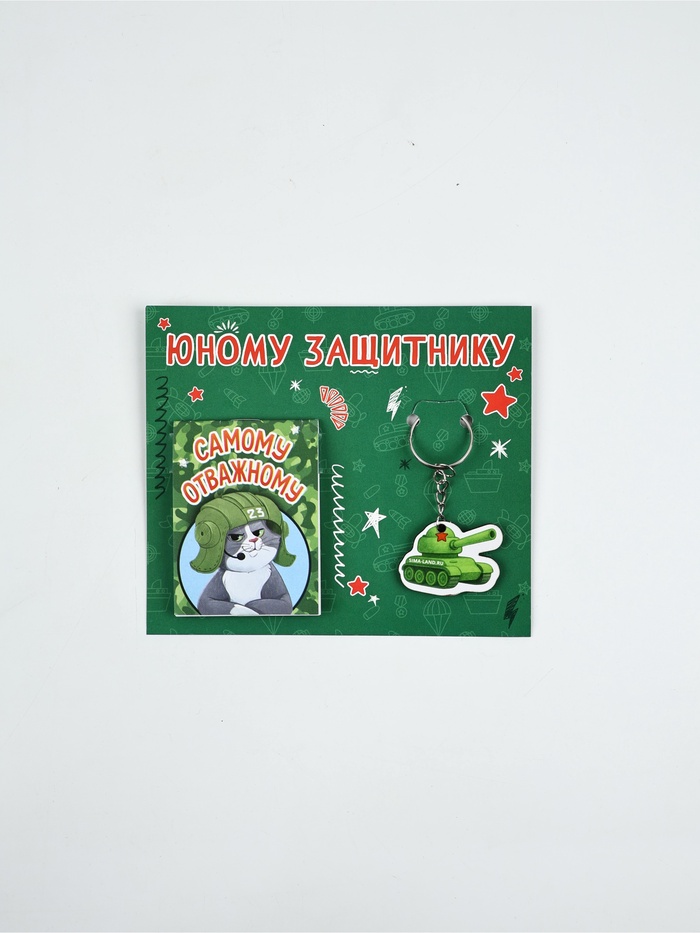 Подарочный набор, блокнот А7, 16 л., деревянный брелок «Юному защитнику» — Характеристики