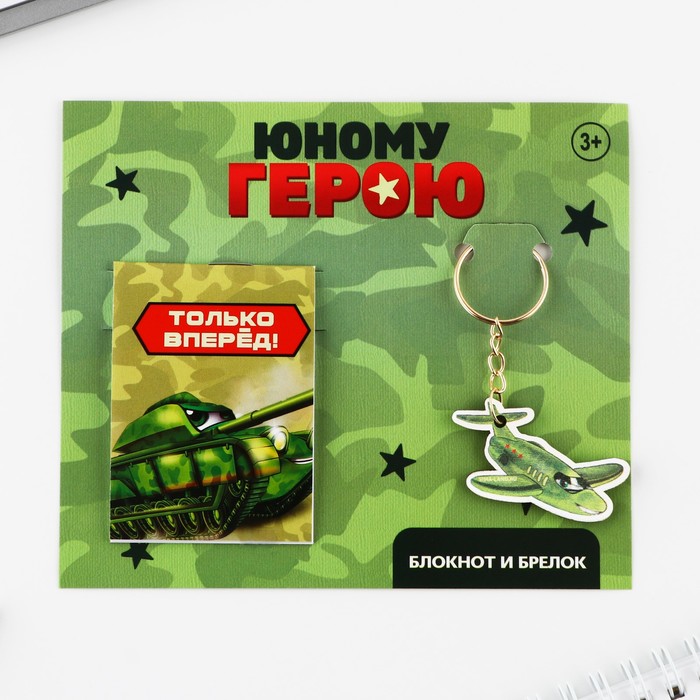 Подарочный набор: блокнот А7, 16 листов и деревянный брелок «Юному герою» — Характеристики