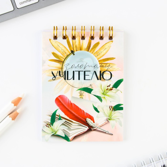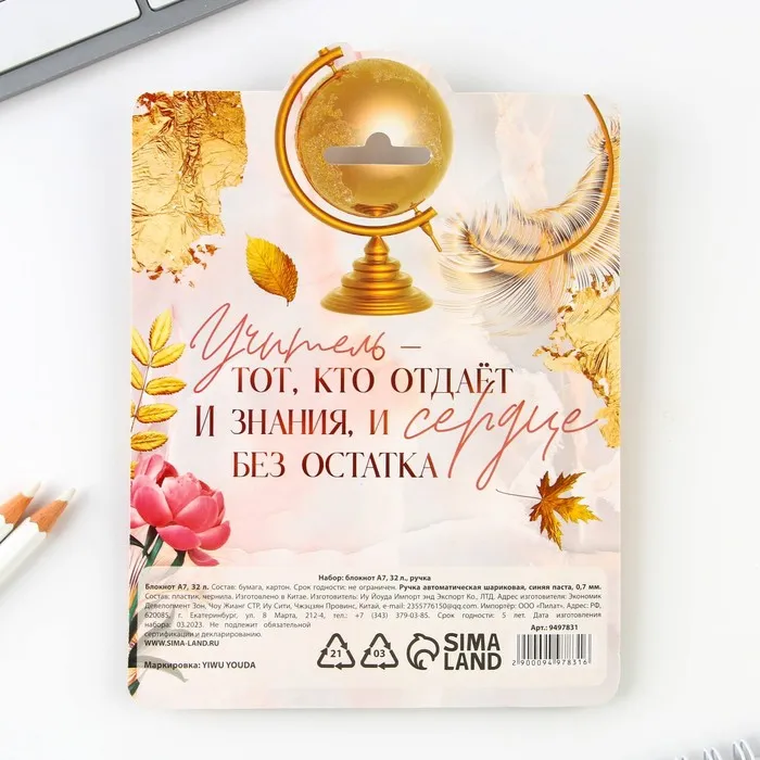 Подарочный набор, блокнот А7, 32 листа, ручка пластик, синяя паста «Золотому учителю» — Характеристики