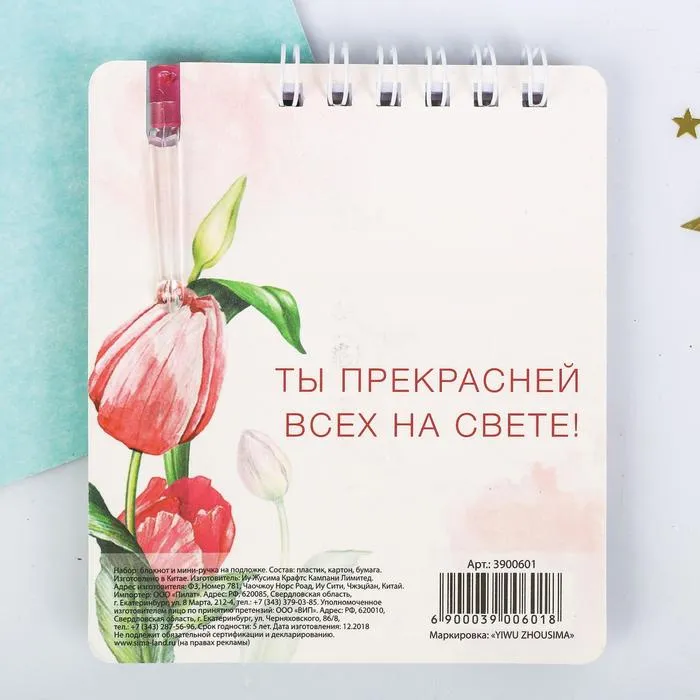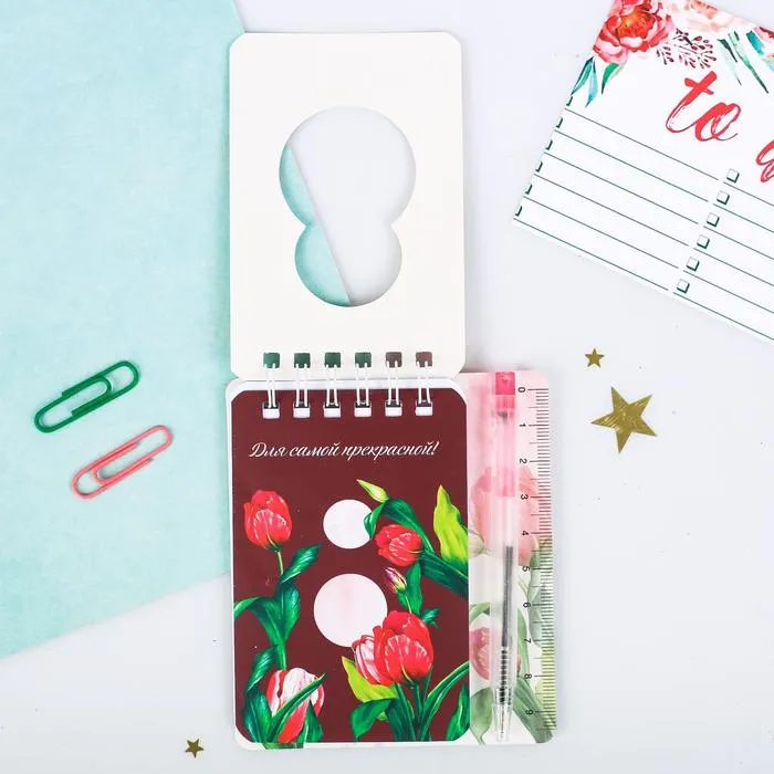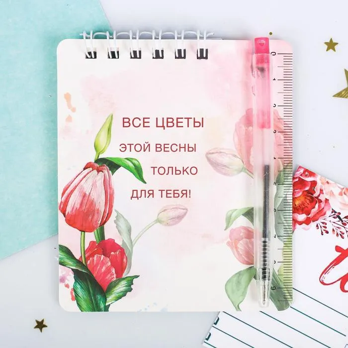 Подарочный набор, блокнот А7.32 листа, мини-ручка «С 8 Марта» — Характеристики