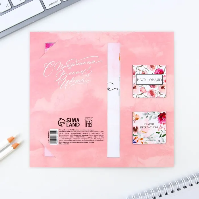 Подарочный набор: блокнот и магнитные закладки 2 шт. «8 марта» — Характеристики