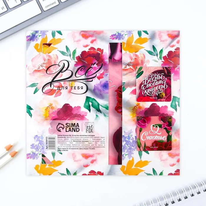 Подарочный набор, блокнот и магнитные закладки 2 шт. «Цветущего счастья» — Характеристики