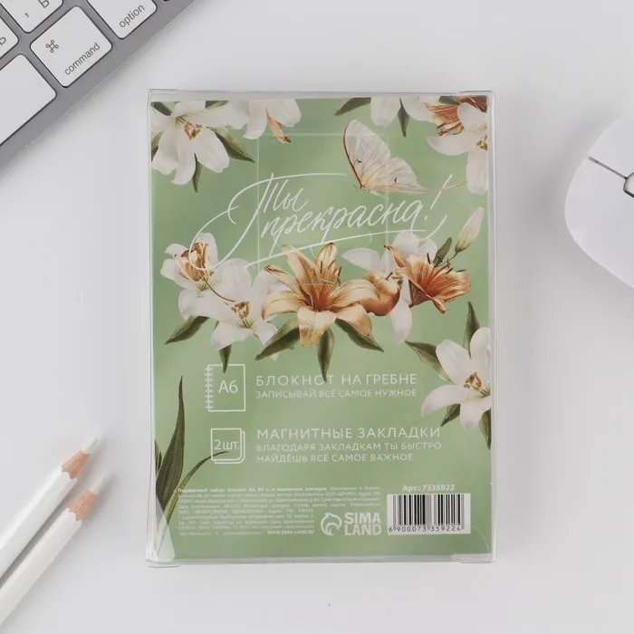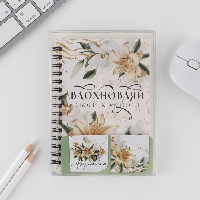 Подарочный набор: блокнот и магнитные закладки в ПВС коробке «Вдохновляй» — Характеристики
