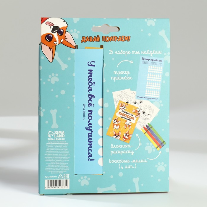 Подарочный набор, блокнот-раскраска А6, трекер привычек и восковые мелки «Для тех, у кого лапки» — Характеристики