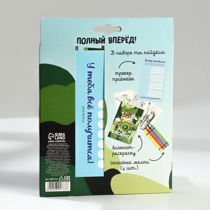 Подарочный набор, блокнот-раскраска А6, трекер привычек и восковые мелки «Пушистому защитнику» — Характеристики