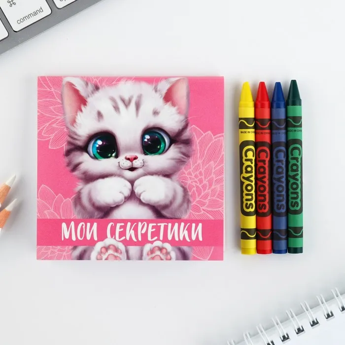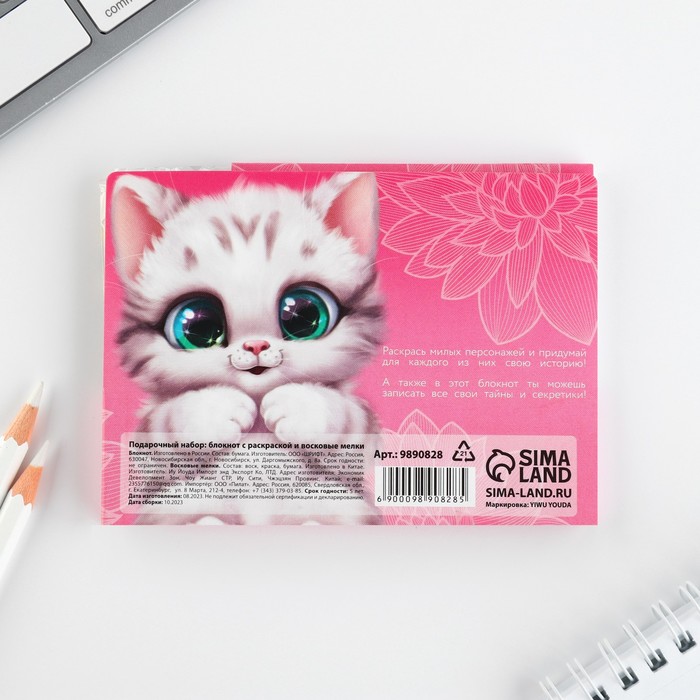 Подарочный набор: блокнот-раскраска и восковые мелки «8 марта: Котенок» — Характеристики