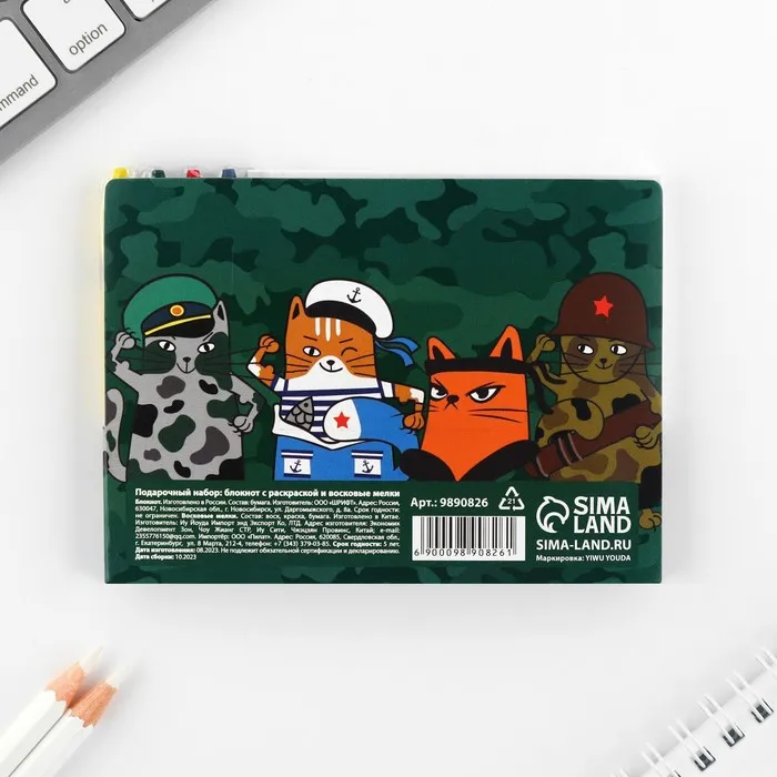 Подарочный набор: блокнот-раскраска и восковые мелки «Герой!» — Характеристики