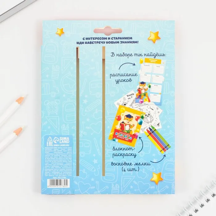 Подарочный набор, блокнот-раскраска, расписание уроков, восковые мелки 4 шт. «Набор выпускника детского сада» — Характеристики