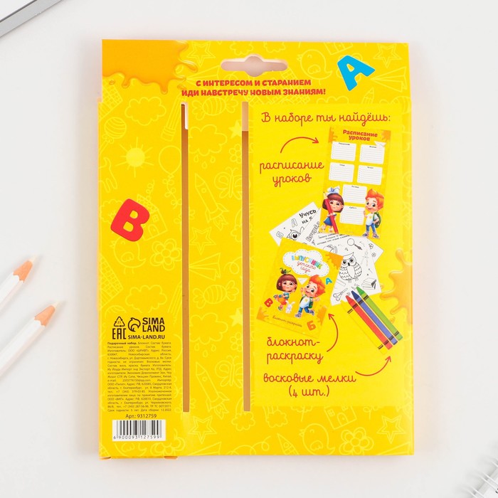 Подарочный набор, блокнот-раскраска, расписание уроков, восковые мелки 4 шт. «Выпускника детского сада» — Характеристики
