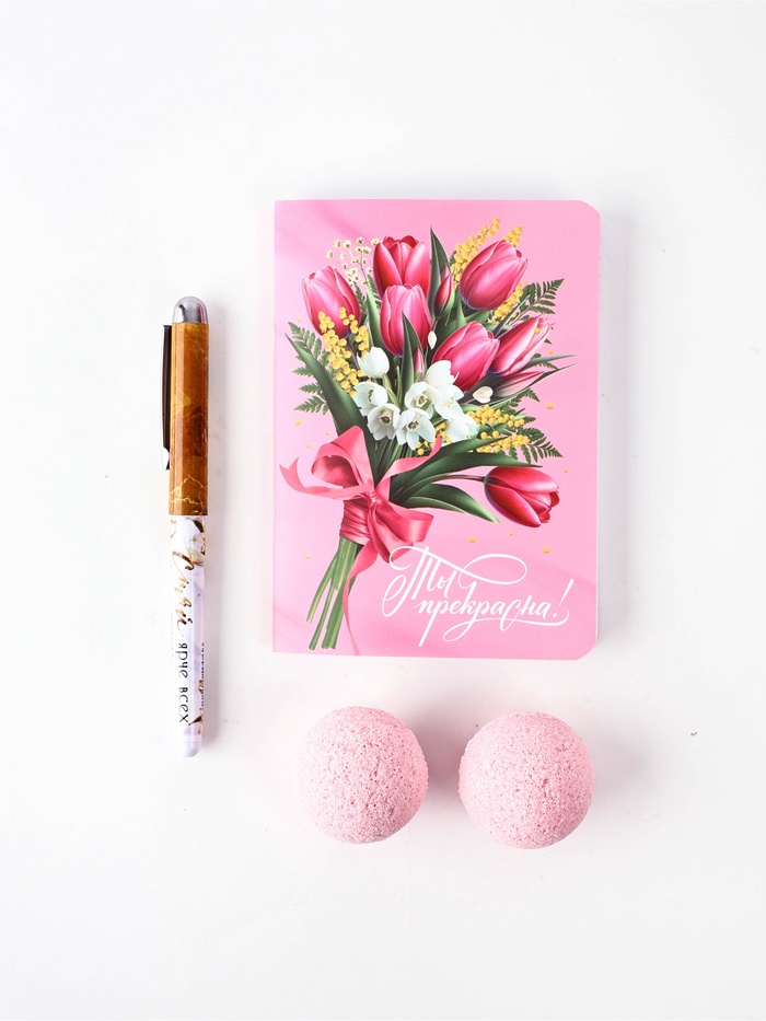 Подарочный набор: блокнот, ручка, бурлящий шар 40 г 2 шт. «С 8 Марта» — Характеристики