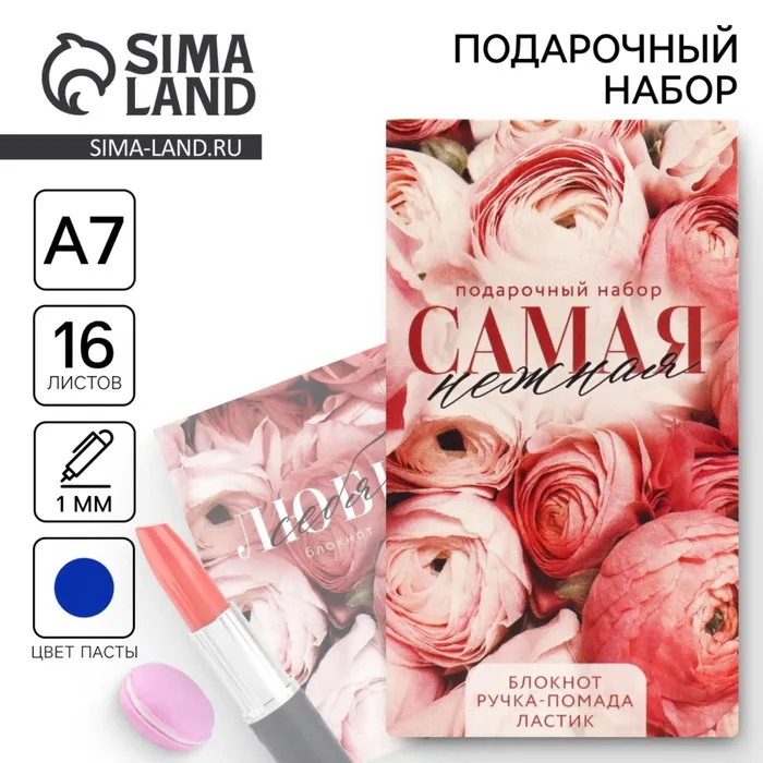 Подарочный набор: блокнот, ручка-фигурная и ластик «Самая нежная» — Характеристики