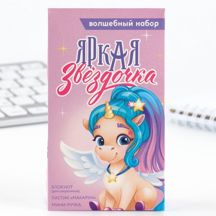 Подарочный набор, блокнот, ручка и ластик «Единорог» — Характеристики